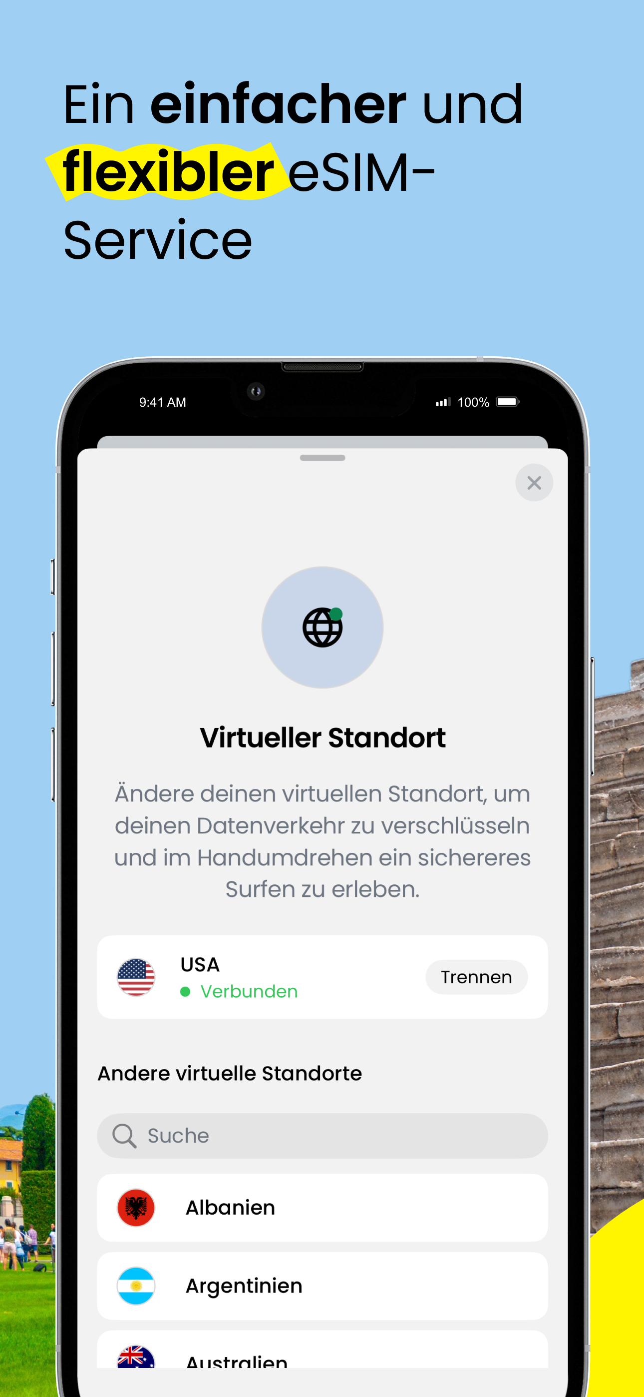 • Vermeide mit der eSIM teure Roaming-Gebühren und unerwartete versteckte Kosten.