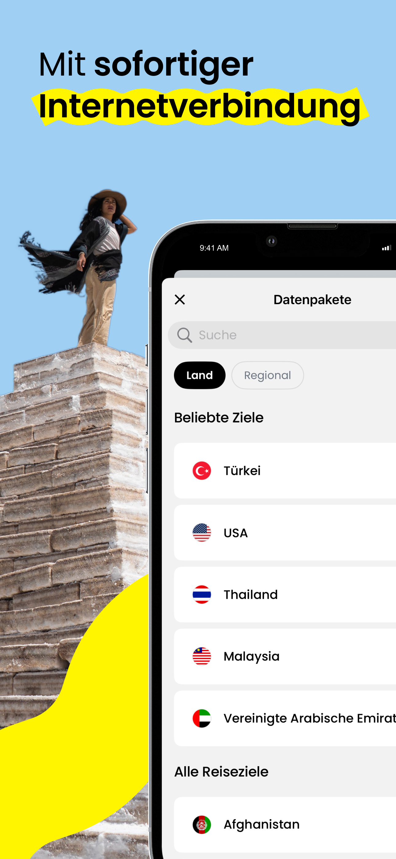 • Erhalte lokale eSIM-Datenpakete für über 200 Reiseziele und genieße den Komfort, immer vernetzt zu sein, wohin dich deine Reise auch führt.