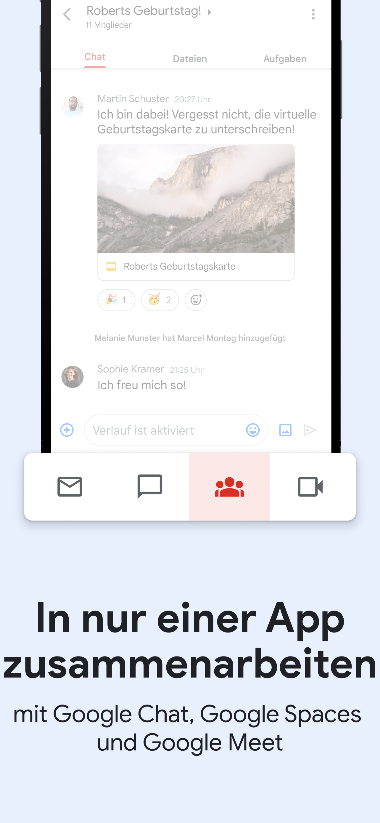 • Aktivieren Sie Google Chat, um mit anderen in Kontakt zu bleiben und zusammenzuarbeiten.