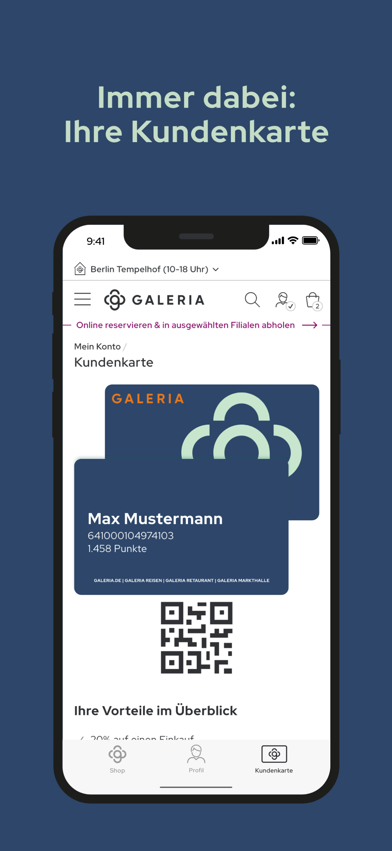 Profitieren Sie von exklusiven Angeboten mit der GALERIA Kundenkarte und sammeln Sie zudem Punkte in unseren Warenhäusern, Reisen, Lebensmitteln, Gastronomie und in unseren Sporthäusern.