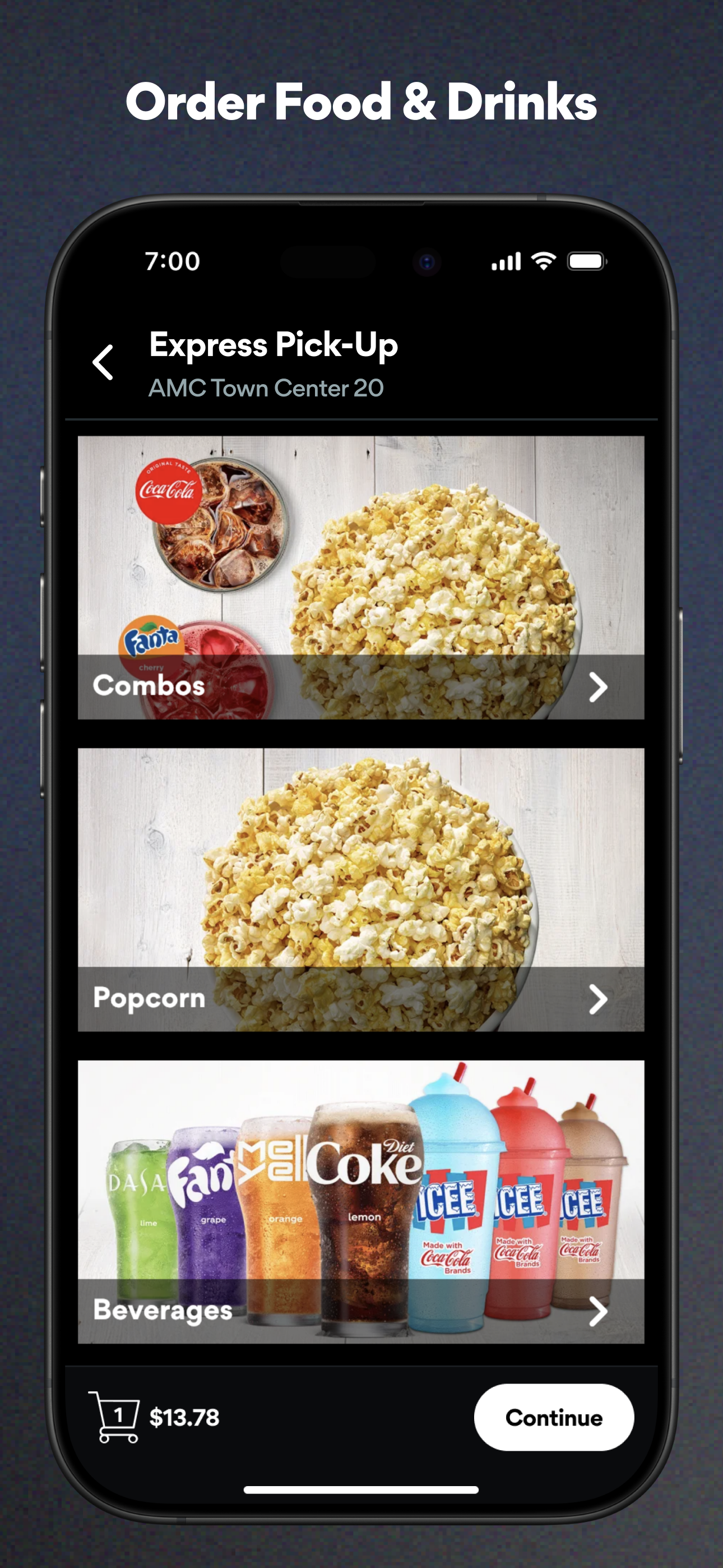 Food and Drinks Online Ordering: Skip the line by ordering concessions before you get to the theatre. Available at select locations with either express pick-up at the concession stand, or delivery to your seat.
