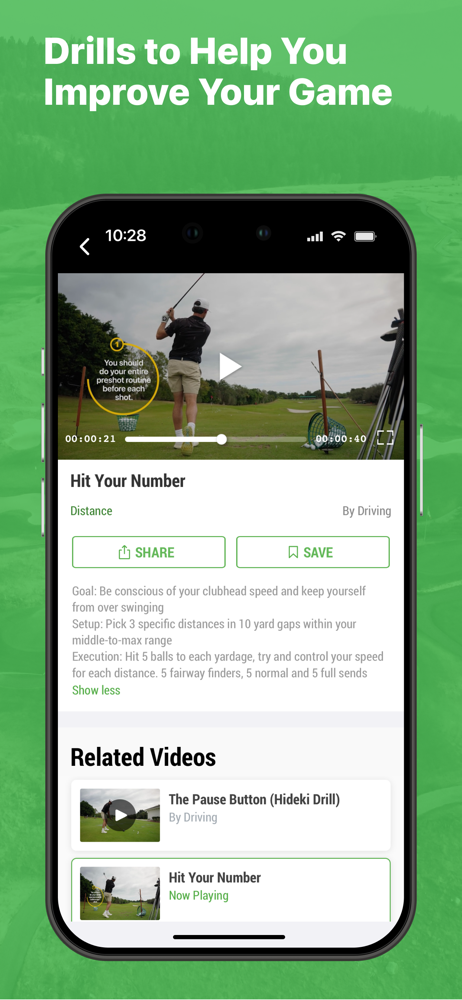 • Controle sus tiros y aprenda qué tan lejos golpea sus palos