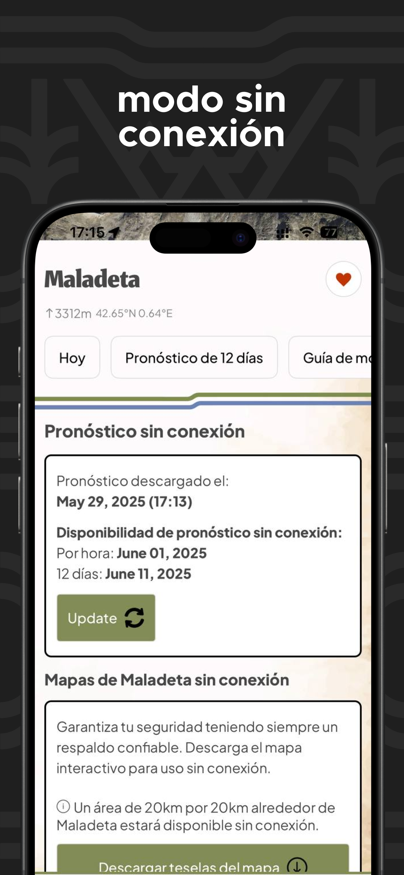 Download forecasts and topographic maps without an internet connection so you’re always prepared.