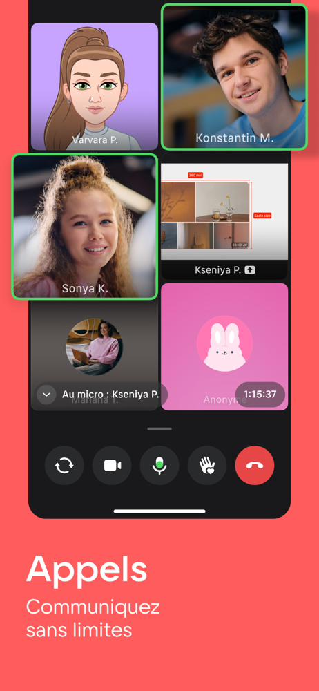Restez en contact avec vos proches : dans messager vous pouvez créer des conversations de groupe et dialoguer non seulement avec vos amis sur VK, mais aussi avec vos contacts. Appels illimités et gratuits : invitez un nombre illimité de personnes à un appel, activez la vidéo sans vous soucier du temps.