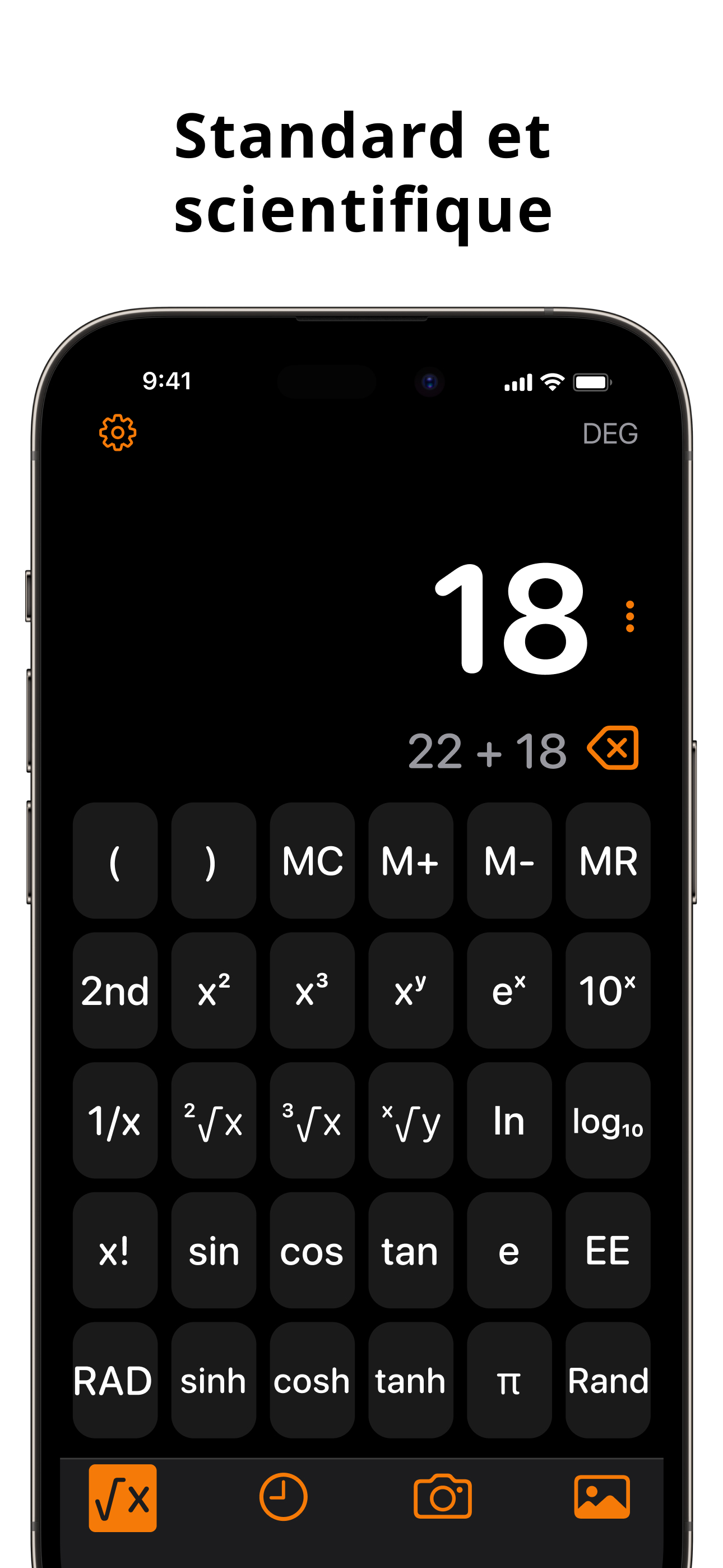▶Calculatrice scientifique avec fonctions puissantes, utilisable en mode portrait ou paysage.