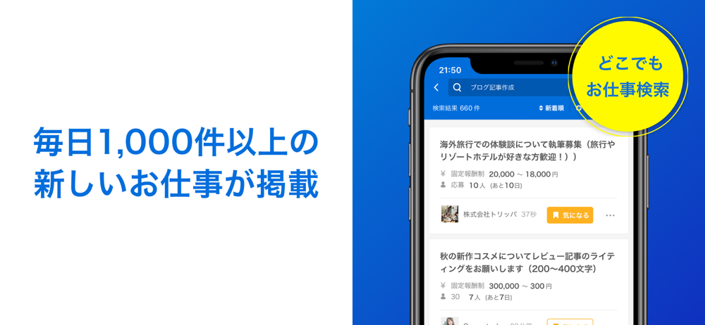 フリーランス・副業・在宅向けのお仕事アプリです。