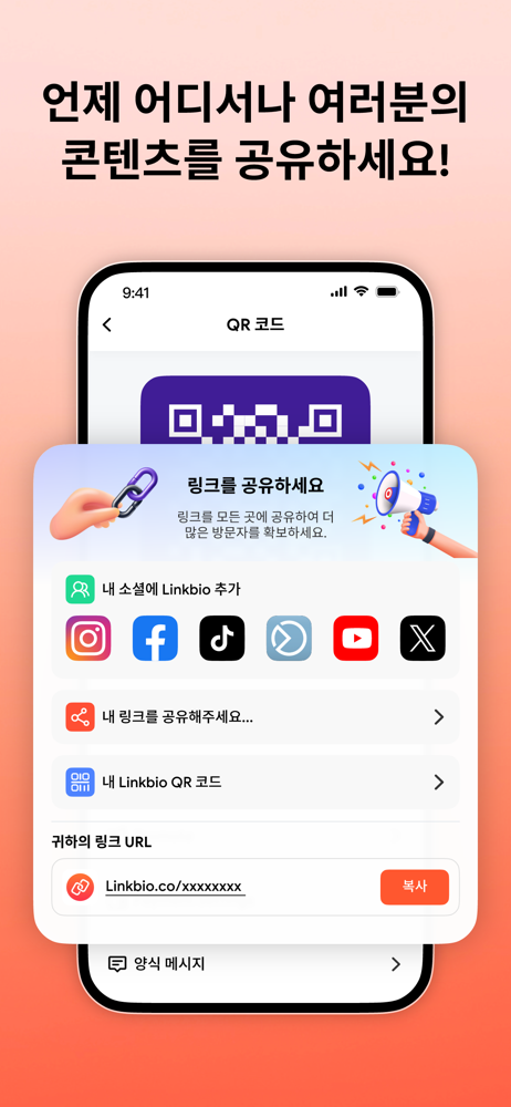 • 링크를 다시 변경하지 않고 인스타그램에서 사용하세요.